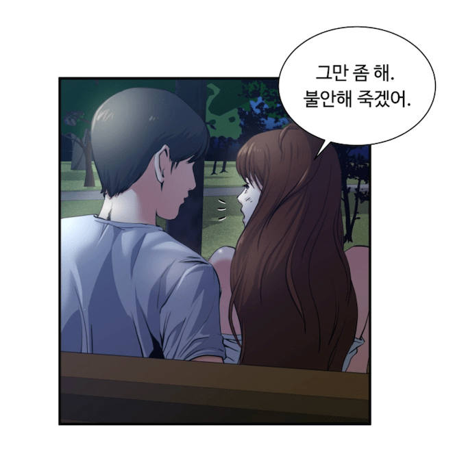 공원에 으슥한 곳에 앉아서 남자주인공은 신났고 여자주인공은 불안해 죽겠는 상황. 무슨 상황인지 아시겠죠? ㅎㅎㅎ 남편이라서 귀엽게 바주려나? 아니면 절대로 안된다고 하려나? 궁금해지는 부분이죠 ㅎㅎㅎ